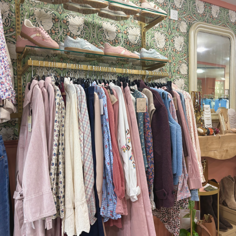 Vous découvrirez chez les Gisèle des pièces majoritairement neuves, ainsi qu’une sélection soignée de seconde main que vous retrouverez sur Vinted.